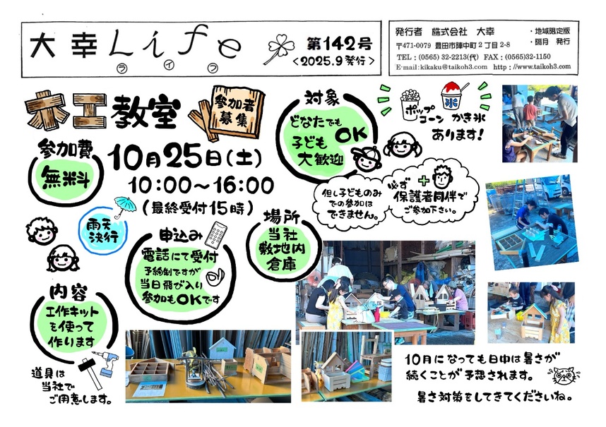 大幸life第134号-相続税対策にもなる土地の有効活用、バルコニーのない家でも干せる専用ユニット、木工教室開催のお知らせ