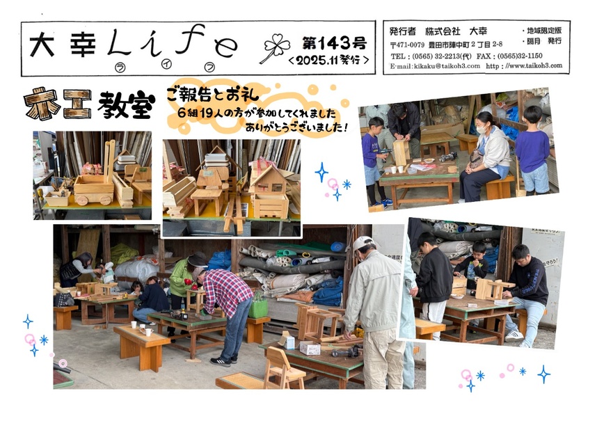 大幸life第142号-木工教室参加者募集、涼しくなる今こそ眠りを整える